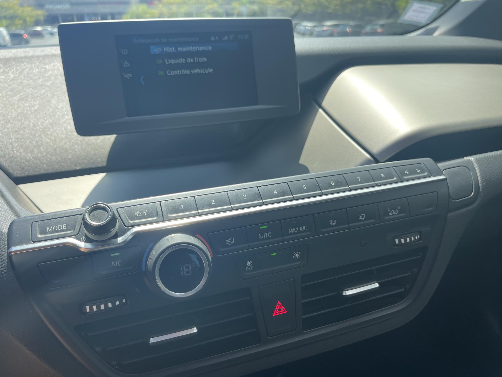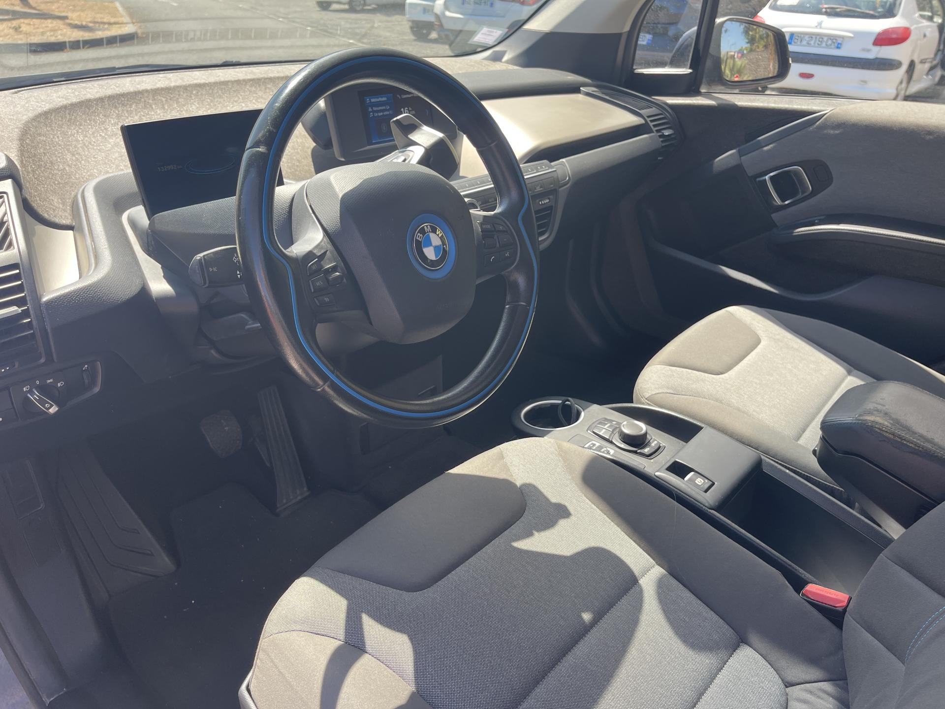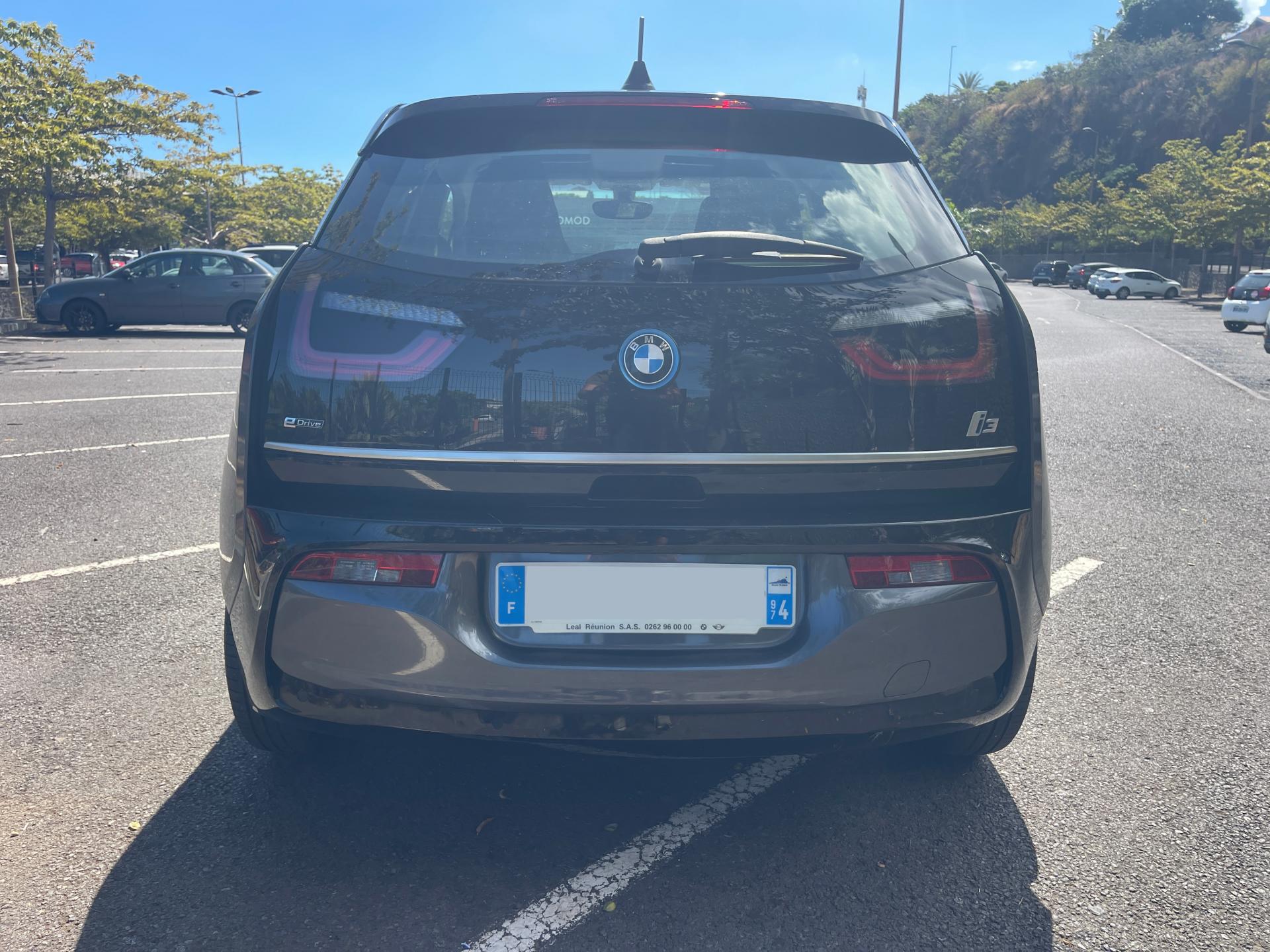 3ème feu stop arrièreAirbags de tête avant/arrièreAirbags frontaux conducteur et passager (déconnectable côté passager)Airbags latéraux avantAntenne de toit en "aileron de requin" et antenne courteAppel d'Urgence IntelligentAppui-tête arrière rabattableAppuie-tête avant intégrés aux siègesAutoradio BMW Professional AM/FM, 4 x 25 W, compatibilité MP3Bandeau pare-soleil gris pour le pare-briseBanquette arrière 2 placesBoîte de vitesse automatiqueCâble de recharge standard sur prise domestiqueCeintures de sécurité 3 points à toutes les placesCharge accélérée CACharge rapide CCClés radiocommandées à mémorisation automatique des réglages "Personal Profile"Clignotants blancs avec répétiteurs latéraux intégrés dans les rétroviseurs extérieursClimatisation manuelle avec filtre anti-pollen et recirculation de l'airCombiné d'instrumentation avec écran couleur 5,7" (14,5cm)Concept LifeDrive alliant fibres de carbone et aluminiumConstruction allégée intelligenteContrôle de freinage en courbe CBCContrôle dynamique de la stabilité DSCContrôle Dynamique de la Traction DTCDémarrage sans clé via le bouton Start/StopDésignation du modèle sur le hayon, "eDrive" à gauche et "i3" à droiteDéverrouillage électrique du hayon et du capot avant via la clé radiocommandéeDirection électrique à assistance variable en fonction de la vitesse ServotronicDossiers de banquette arrière rabattables symétriquement (50/50)Eclairage plafonnier soft-on/soft-off et éclairage du coffreEléments extérieurs (poignées de portes, baguettes de pare-chocs) couleur carrosserieEsprit Intérieur AtelierFeux antibrouillard arrièreFeux de stop bi-intensitéInterface Bluetooth pour téléphone portable (mains-libres)Jantes profilées 19'' (48cm) style 427 à rayons en étoile 5 J x 19 / pneumatiques 155/70 R19Mesure individuelle de pression des pneumatiquesOrdinateur de bord avec Check-Control et indicateur de température extérieureOuverture des portes antagoniste, sans montant centralPorte-gobelets (2) entre les places arrièrePorte-gobelets sur la console centralePrise 12V entre les sièges avantProjecteurs Full-LED (feux de jour, feux de croisement, feux de route et clignotants à LED)Radars de stationnement arrière PDCRétroviseurs extérieurs électriques et dégivrants (asphérique côté conducteur et passager)Rétroviseurs extérieurs noirs brillantsSélecteur de vitesses au volantServices Après-Vente connectés BMW TeleServicesServices ConnectedDrive (3ans)Sièges conducteur et passager réglables en hauteur et en inclinaisonSystème anti-blocage des roues ABSSystème de fixation ISOFIX aux places latérales arrièreSystème de récupération de l'énergie au freinageTapis de sol en veloursTrappe pour recharge électrique : aile arrière droiteTriangle de présignalisation (situé dans le compartiment à bagages avant)Verrouillage automatique des portes dès 15km/hVerrouillage centralisé des portes, du coffre et de la trappe électriqueVide-poches ergonomiques dans les portes avant et entre les deux places arrièreVitres arrière fixesVitres électriques avant avec commande par impulsion et protection anti-pincementVolant cuir 2 branches, réglable en hauteur et en profondeur