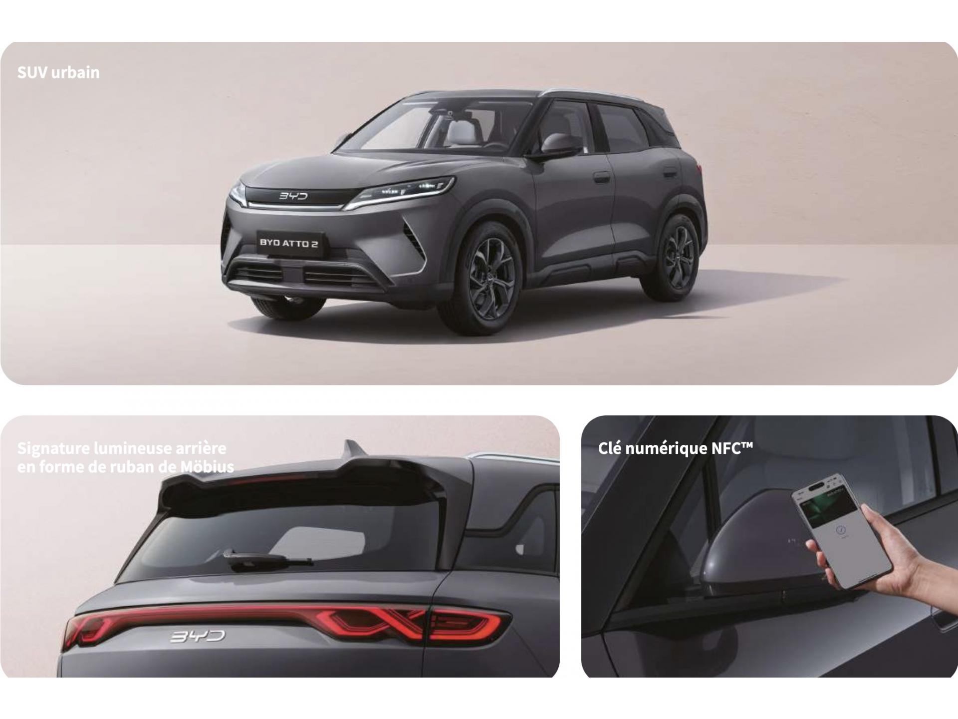 Nous vous proposons le modèle BYD ATTO 2 Comfort 65kWh 204ch, véhicule neuf sorti d'usine, délai de livraison sur demande.