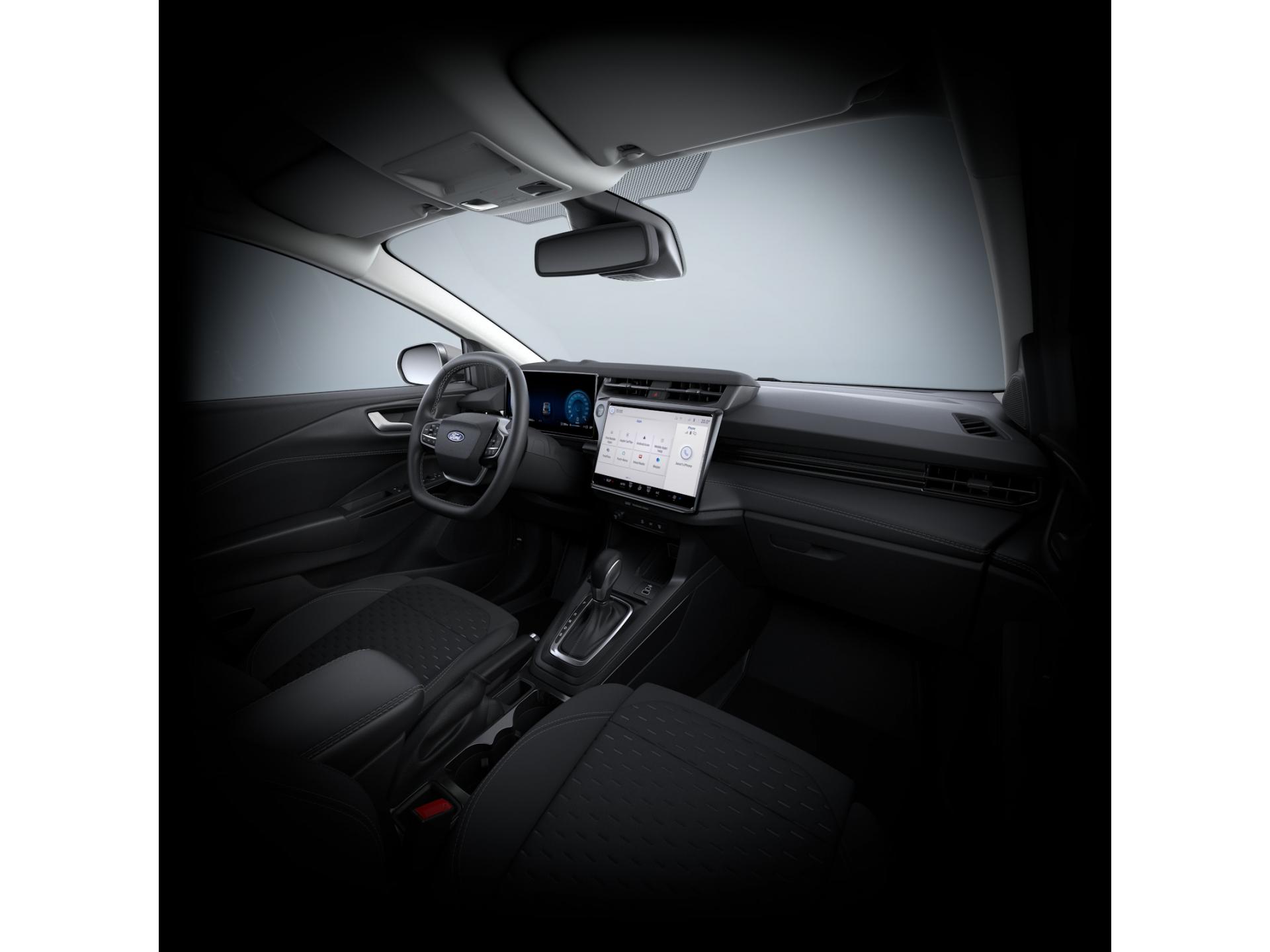 Airbags frontaux et latéraux conducteur et passagerAirbags rideaux pour conducteur et passager avantAlerte à la vigilance du conducteurAllumage automatique des projecteursArches de roue Gris AnthraciteAssistant à une conduite économiqueAssistant de circulation à contre-sensAssistant de pré-collision avec freinage post-collisionBouclier avant TitaniumBouton de démarrageCaméra de reculCapteur de pluieCapteurs de stationnement arrièreClimatisation automatiqueCombiné d'instrumentation numérique 12,8"Commutation automatique des feux de routeCompartiment de rangement sous le plancher de coffreConsole centrale avec accoudoir coulissantEclairage intérieur d'ambiance monochromeFeux arrière à LEDGrille de calandre ActiveJantes en alliage 17” “Titanium”Jupes latérales Gris AnthraciteKit de réparation pneumatiqueLane Assistant : assistant de maintien dans la voieLecture des panneaux de signalisationLimiteur de vitesseModem 5GPare-brise acoustiquePare-soleils avec miroirs de courtoisie éclairésPlanche de bord en vinyle PremiumPneu ECOPommeau de levier de vitesses avec surpiqûres grisesProjecteurs avant et feux de jour à LEDRégulateur de vitesseRétroviseur intérieur électrochromeRétroviseurs extérieurs électriques et dégivrants couleur carrosserie, intégrant les rappels de clignotantsSélecteur de mode de conduiteSiège conducteur à réglage lombaireSiège conducteur à réglage manuel 4 positionsSièges SportSystème audio avec SYNC 4 avec écran tactile 12" et commandes vocales, 2 ports USB, navigation, Apple CarPlay et Android Auto, 6 haut-parleursSystème de contrôle de la trajectoire et de la stabilité avec assistant au freinage d'urgence et aide au démarrage en côteSystème de surveillance de pression des pneusTapis de sol avant PremiumVitres arrière surteintéesVitres avant et arrière électriquesVolant cuir Sensico